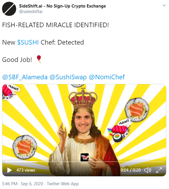 In order to save the SushiSwap project, Chef Nomi then transfers control to SBF – CEO of FTX and Big Boss of Serum