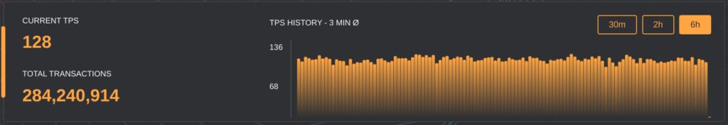 Current TPS – Transactions Per Second for Solana are insane when compared to other blockchains. MainNet Beta can get up to 65000 TPS with 200 nodes and can scale up