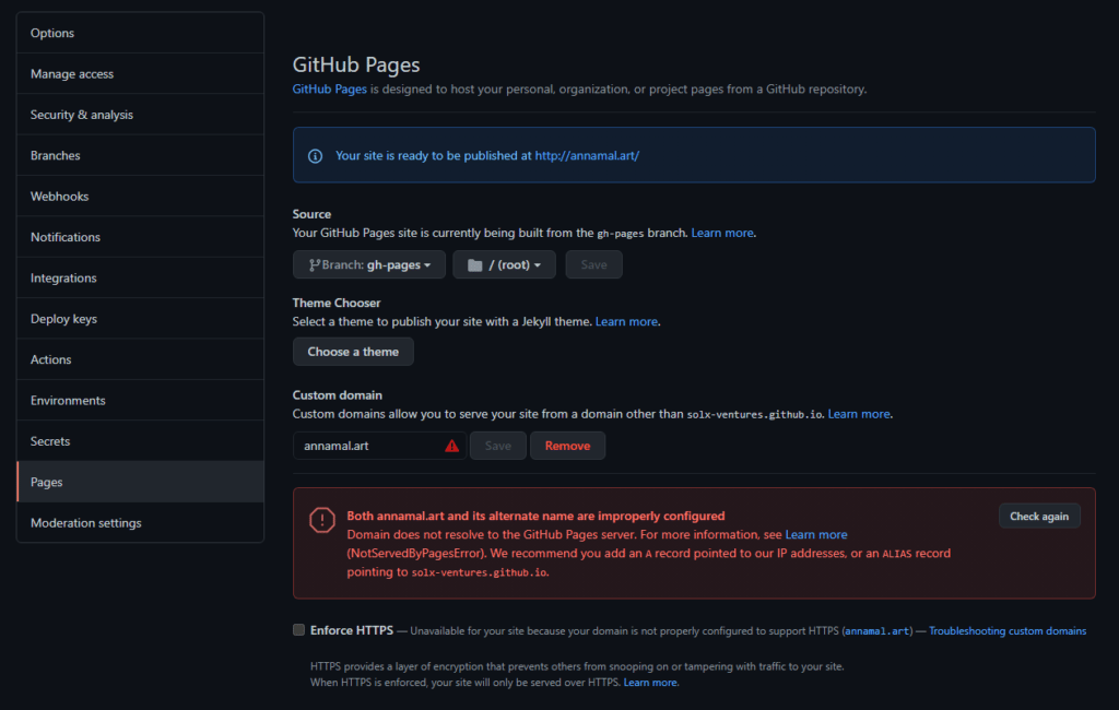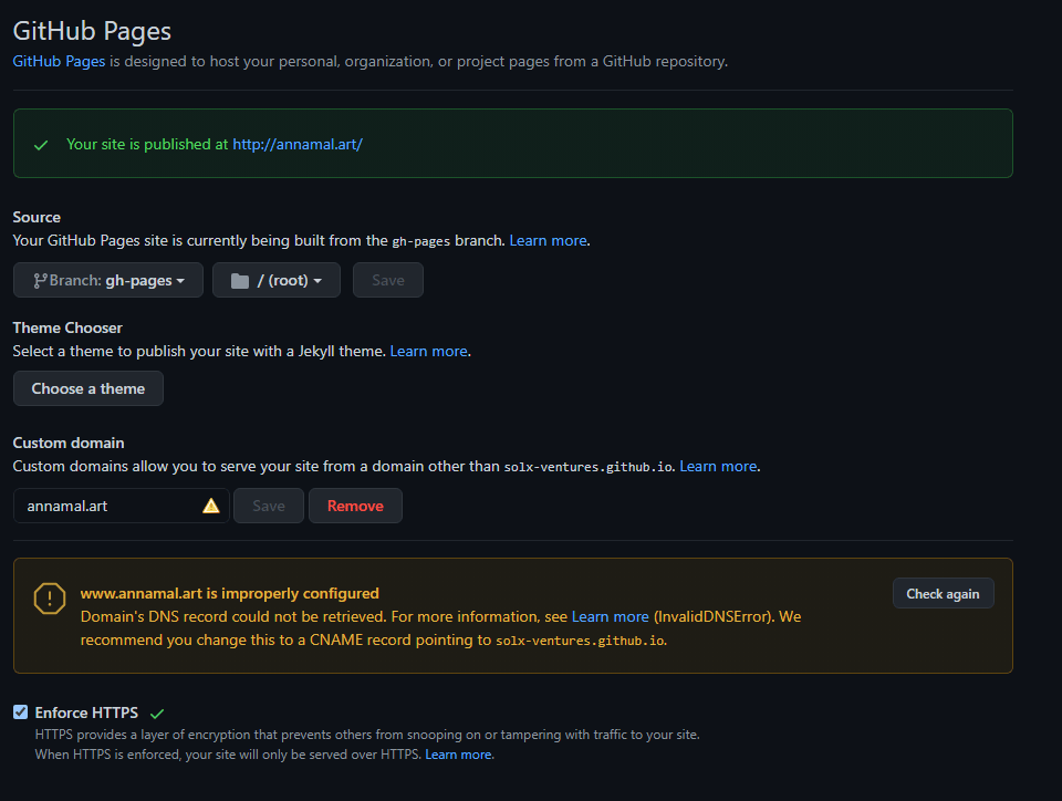 To read more about using Github custom domains read their official documentation.